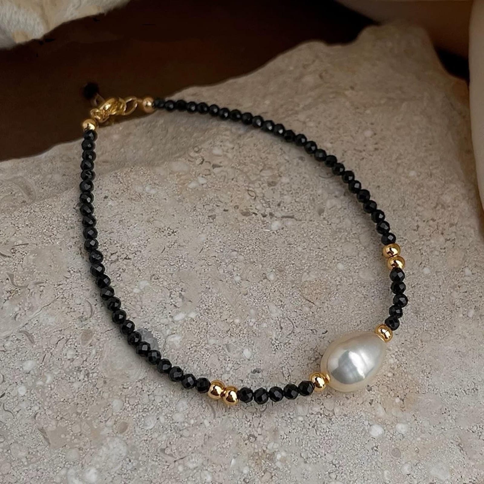 Material: Freshwater Pearl, Black Spinel and 925 Sterling Silver.
