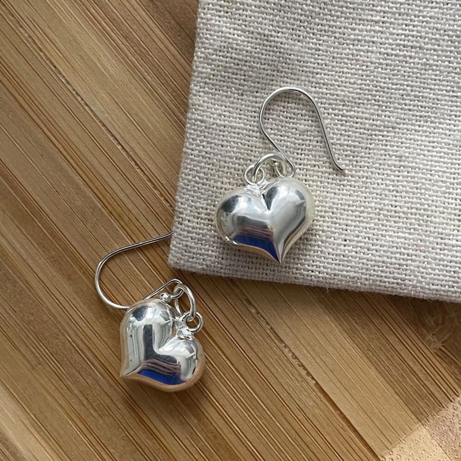 Silver Love Heart Chunky Earrings (Sterling Silver)