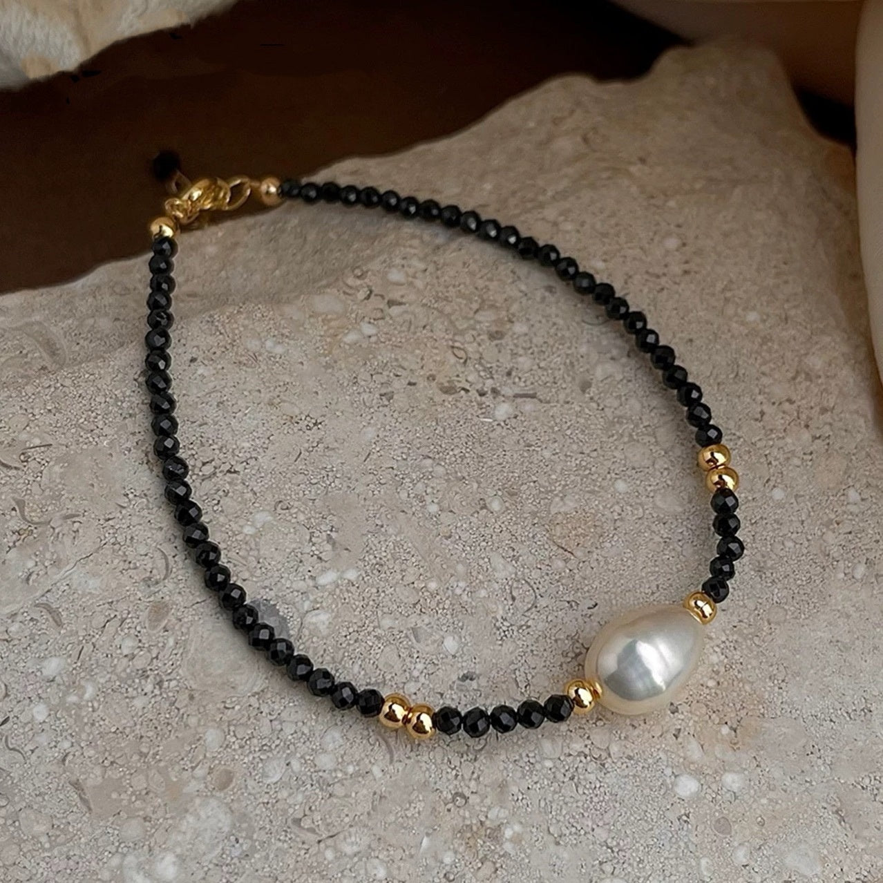 Black Spinel & Pearl Beaded Bracelet