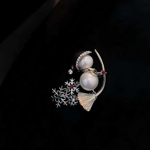 「Broom-Riding Snowman 」Brooch