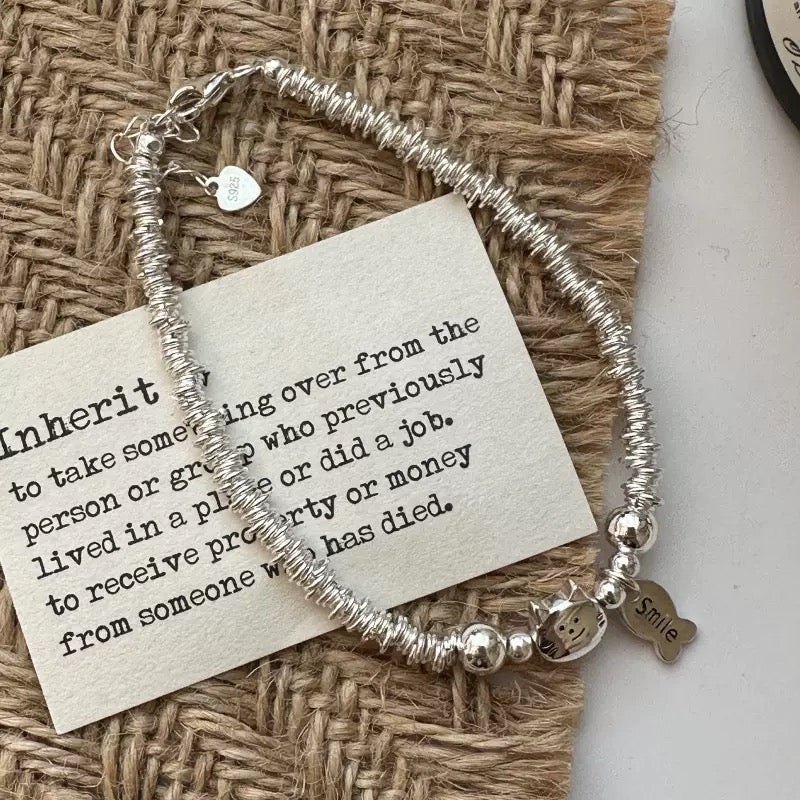 S925 Sterling Silver Cat & Fish Beaded Bracelet