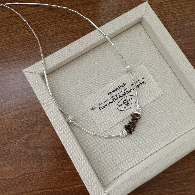 S925 Sterling Silver Crushed Silver Pendant Bamboo-Joint Style Necklace