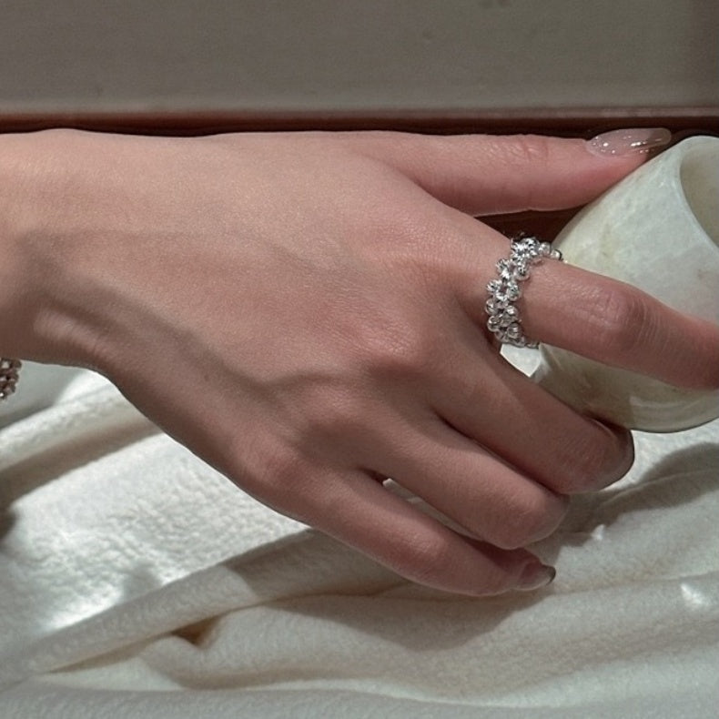 S925 Sterling Silver Patterned Bead Knitted Ring