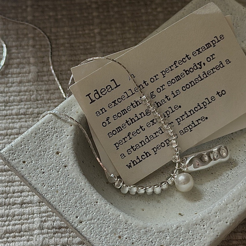 S925 Sterling Silver Small Silver Bar + Pearl Pendant Necklace