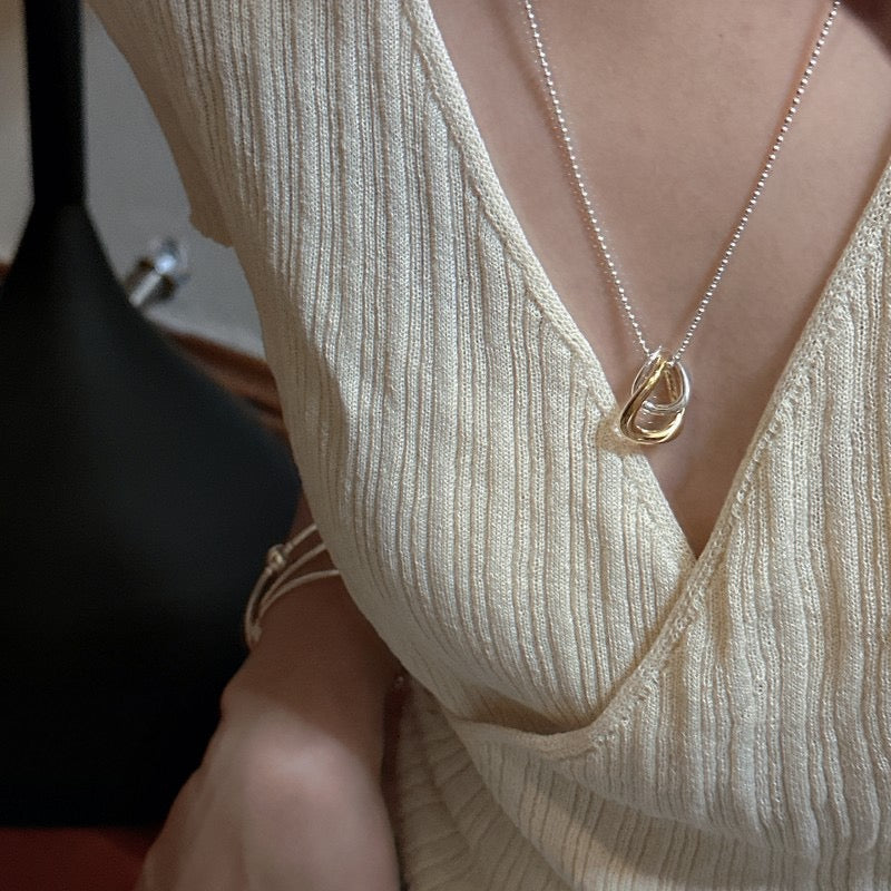 S925 Sterling Silver Two-Tone (Gold and Silver) Pendant Necklace